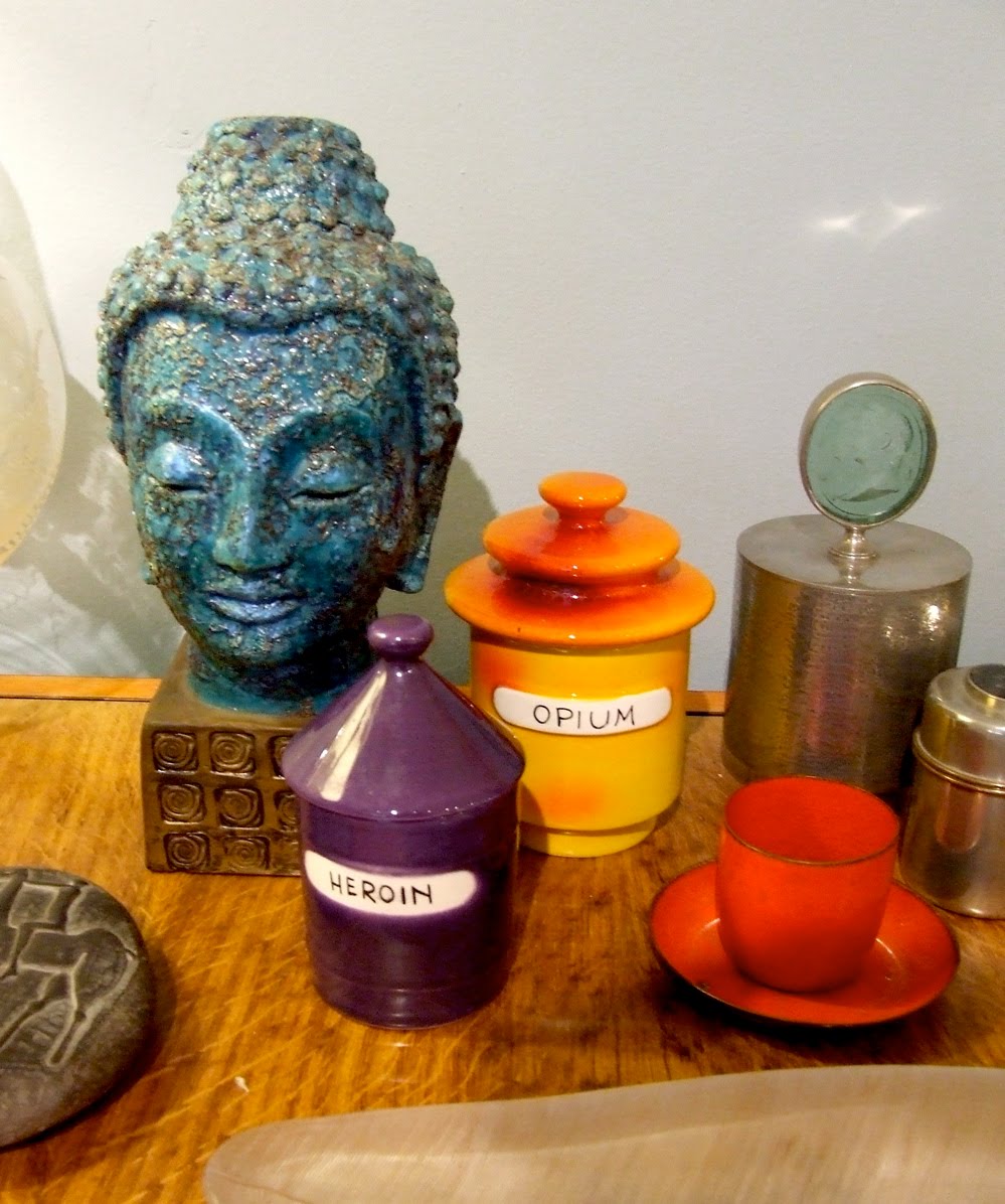 Raymor Italian ceramic buddha head with heroin & opium canisters